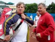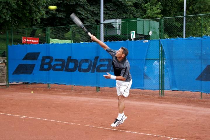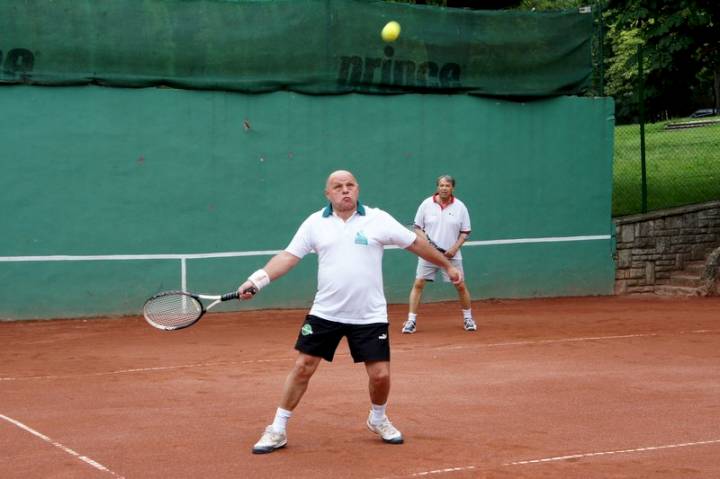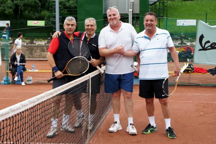 A csoportokon belül körmérkőzést vívtak a párosok, majd az 1-2. helyezett továbbjutott, a 3-4. helyezettek a vigaszágon folytathatták. A 3. csoportban Koczka Csaba térde megsérült, de Dr. Fábián Péter mentőorvos úgy ellátta a baját, hogy folytathatta a küzdelmet. A már csak sántikáló teniszező egyébként a tartaléksorból lépett elő, mert Sütő Zoltán nem érkezett meg a reggeli kezdésre. Szakdolgozónő is orvosolt: Borzási Edina, a Shopsport masszőrje azokon az urakon segített, akiknek merevedési (csukló, vagy deréktáji) problémái voltak.